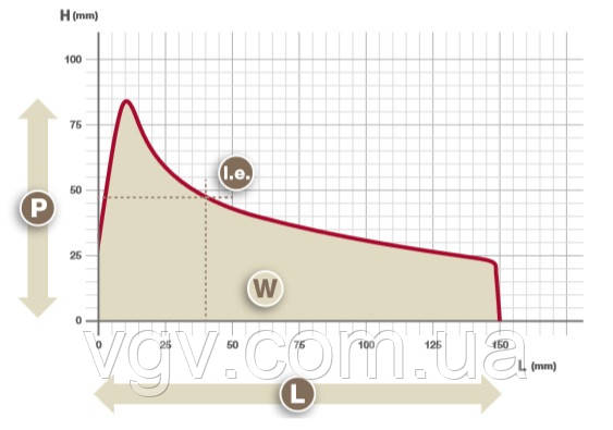 - L: розтяжність тіста (максимальний об'єм повітря, який може бути в міхурі)